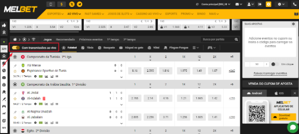Sim. A Melbet oferece apostas ao vivo para futebol e vários outros esportes